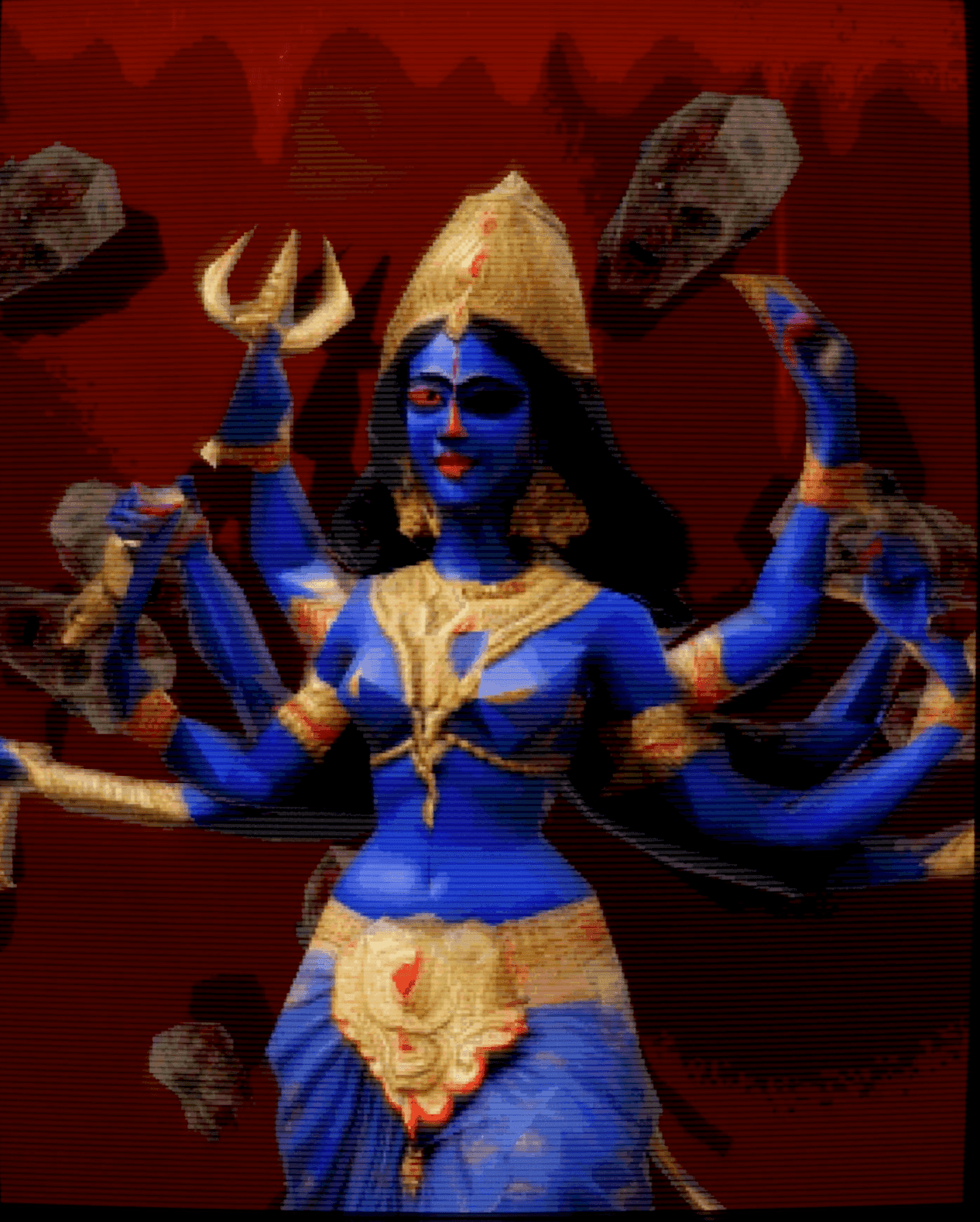 تُمثل كالي، المُدمر المُخيف للشر والأم الحانية في الوقت ذاته. وتعكس طبيعتها المتناقضة تعقيد الحياة نفسها، فتشمل التدمير، والخلق، والخوف، والحب.